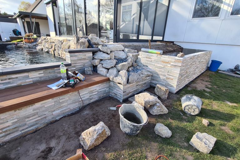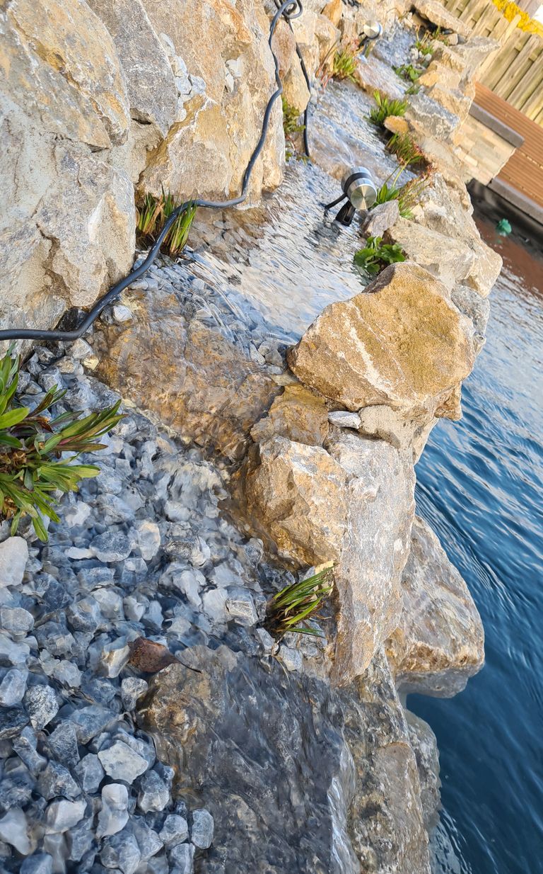 Wir haben ihn entworfen und realisiert, im Anschluss kamen noch ein Bachlauf und ein Hochbeet mit dazu.